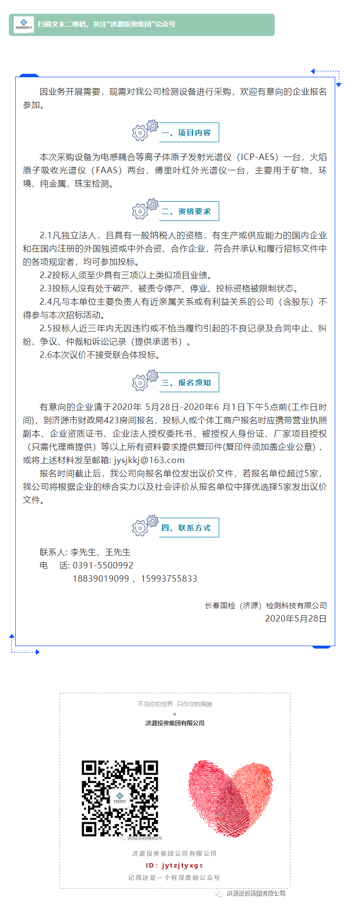 長春國檢(濟源)檢測科技有限公司采購ICP-AES、FAAS、傅里葉紅外光譜儀等檢測設備競爭性議價公