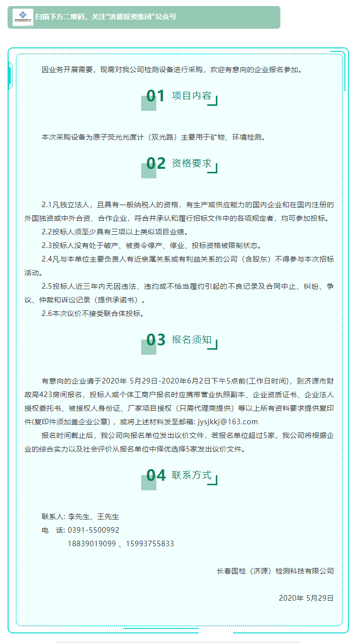 長(zhǎng)春國(guó)檢(濟(jì)源)檢測(cè)科技有限公司采購(gòu)原子熒光光度計(jì)檢測(cè)設(shè)備競(jìng)爭(zhēng)性議價(jià)公告