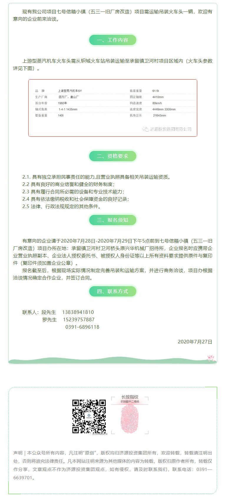 七號(hào)信箱小鎮(zhèn)(五三一舊廠房改造)項(xiàng)目火車頭吊裝運(yùn)輸詢價(jià)公告