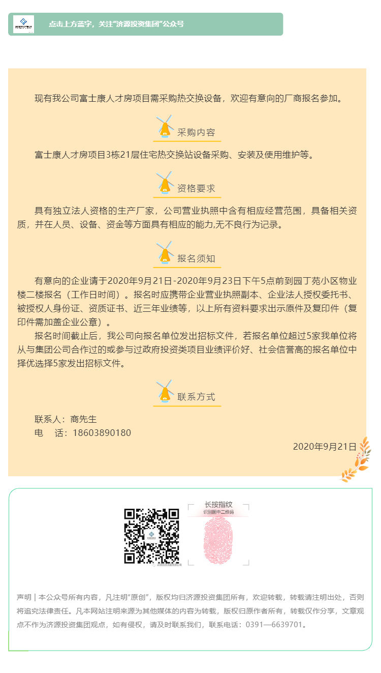 富士康人才房項(xiàng)目熱交換設(shè)備采購安裝競爭性議價(jià)公告
