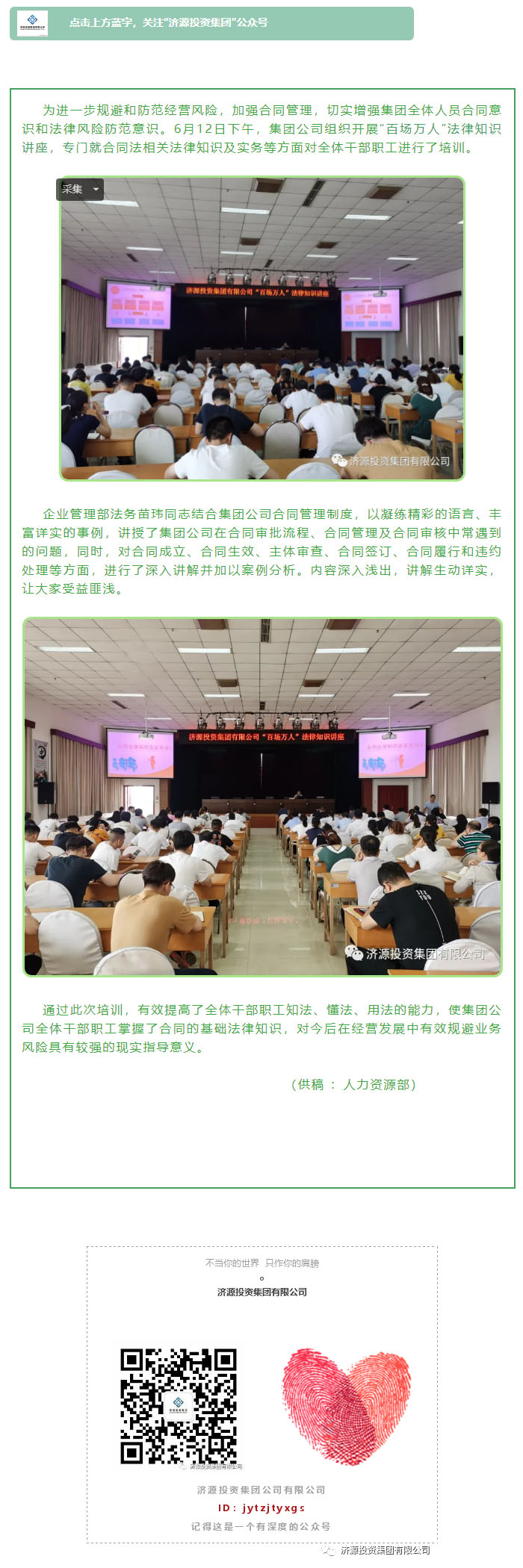 集團(tuán)公司組織開展 “百場萬人”法治知識講座