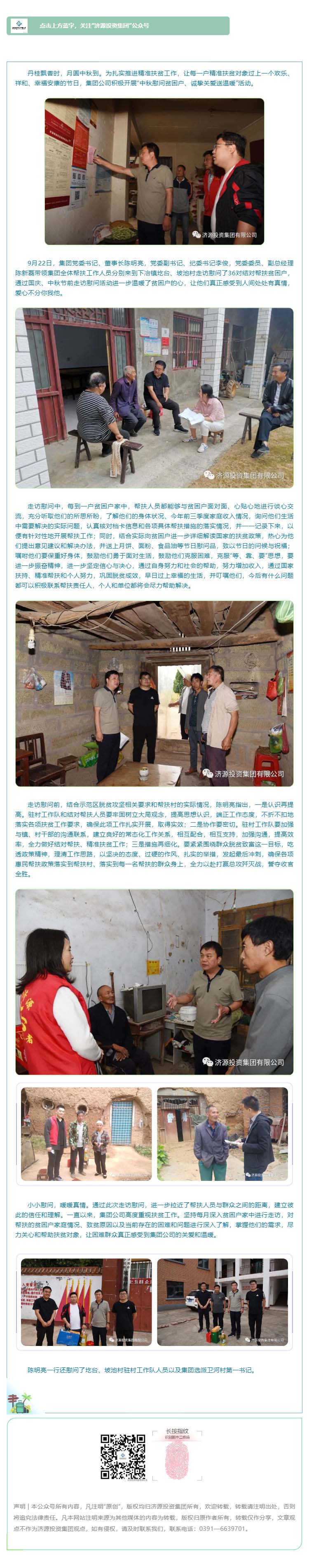 丹桂飄香時(shí),月圓中秋到。為扎實(shí)推進(jìn)精準(zhǔn)扶貧工作,讓每一戶精準(zhǔn)扶貧對(duì)象過上一個(gè)歡樂、祥和、幸福安康的節(jié)日,濟(jì)源投資集團(tuán)積極開展“中秋慰問貧困戶、誠摯關(guān)愛送溫暖”活動(dòng)。