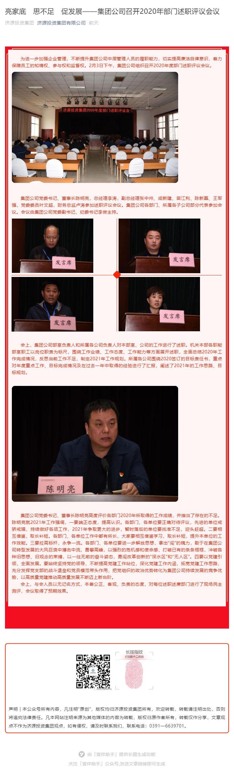 亮家底 思不足 促發(fā)展——集團公司召開2020年部門述職評議會議