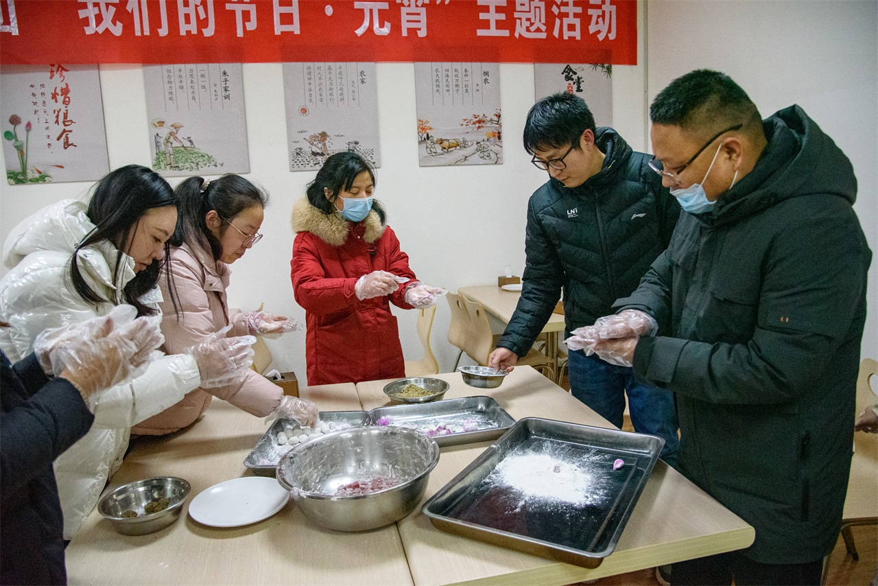 情暖元宵包湯圓活動(dòng)。在職工餐廳活動(dòng)現(xiàn)場(chǎng)一派熱鬧景象,大家拿出提前準(zhǔn)備好的糯米面粉、山楂餡兒、芝麻餡兒等材料,揉面的揉面,拌餡的拌餡,配合默契,好不熱鬧,大家邊做邊拿起手機(jī)拍照,歡聲笑語(yǔ)不絕于耳。