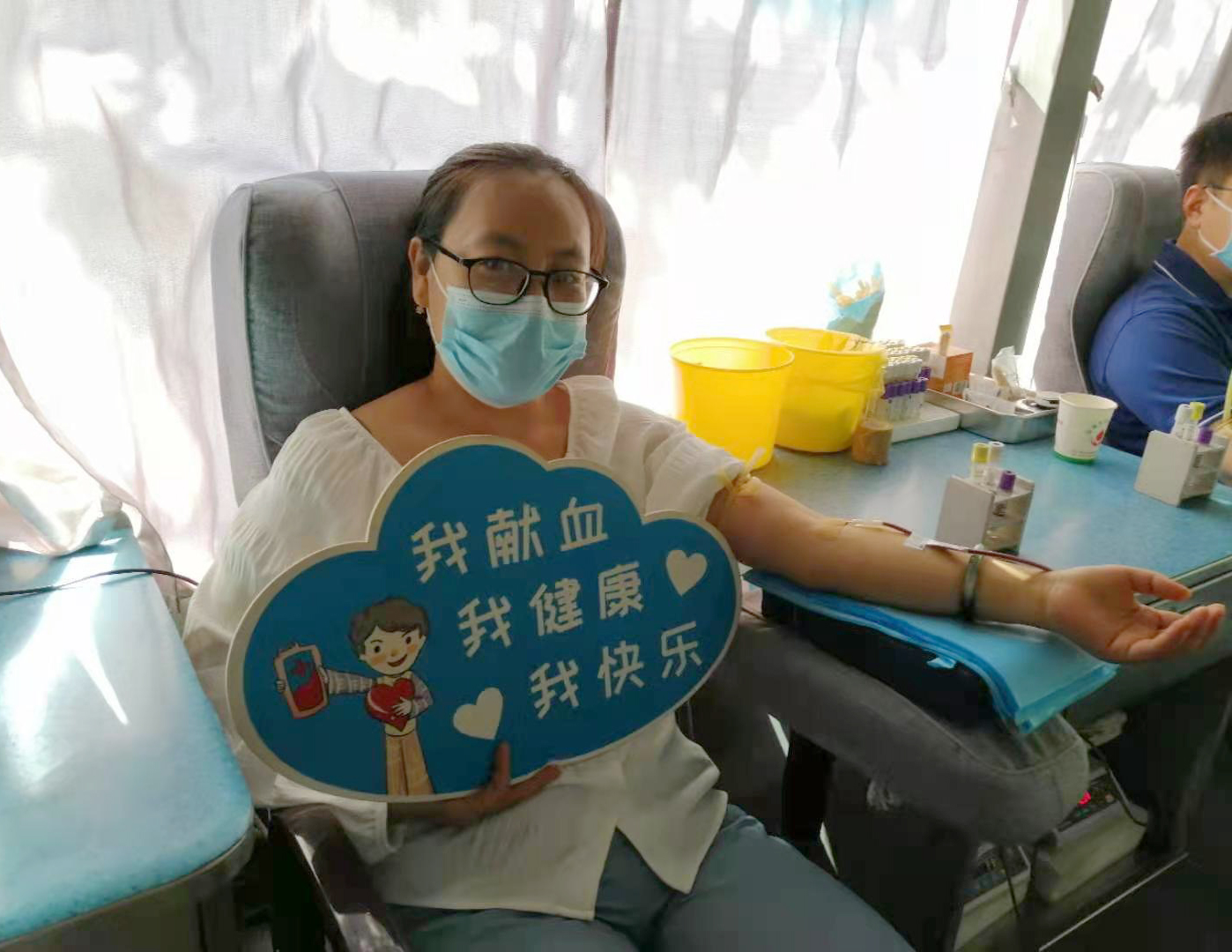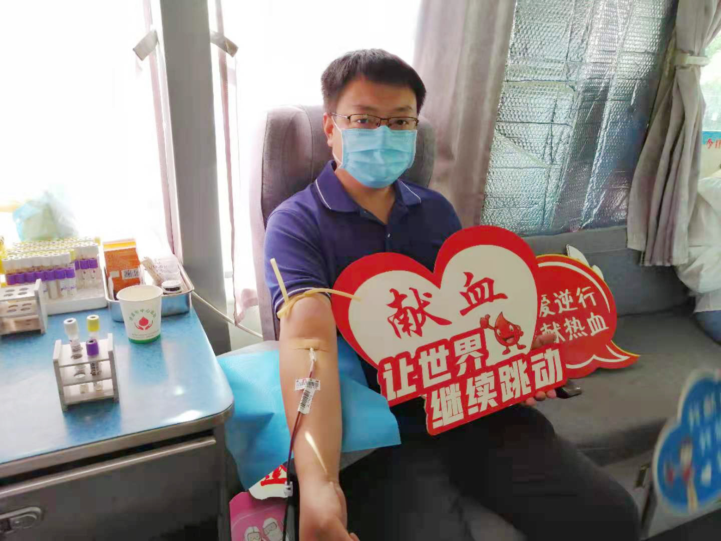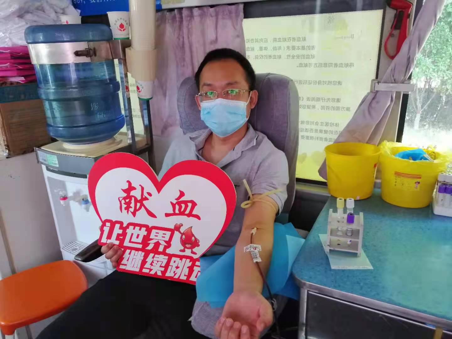 雖然烈日當(dāng)空,但絲毫沒有影響大家的奉獻(xiàn)愛心的熱情。活動(dòng)現(xiàn)場(chǎng),有堅(jiān)持多年獻(xiàn)血的“老面孔”、也有第一次獻(xiàn)血的“新生力量”,大家按照獻(xiàn)血流程積極配合醫(yī)護(hù)人員填表登記、量血壓、初篩化驗(yàn)、靜脈采血等工作。符合獻(xiàn)血標(biāo)準(zhǔn)的干部職工登上獻(xiàn)血車開始獻(xiàn)血,一股股鮮紅的血液,順著導(dǎo)管流進(jìn)血袋,匯聚成一個(gè)個(gè)希望和愛心。