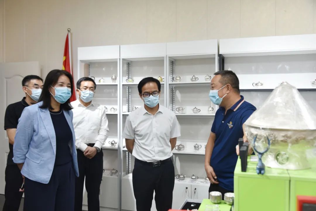 馬東祺一行先后走進產(chǎn)品展廳、電商直播間等地,通過實地察看、聽取匯報、詢問交流等方式,詳細了解貴金屬深加工制造的銀錠、首飾、茶杯等各類商品,耐心詢問白銀制品直播帶貨銷售狀況,并對中國白銀城線上線下相結(jié)合的銷售模式表示肯定。