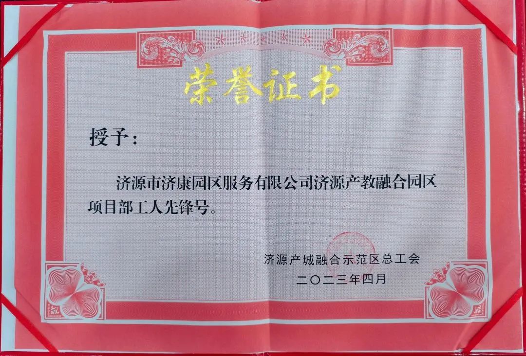 4月25日,濟(jì)源示范區(qū)總工會舉辦濟(jì)源示范區(qū)2023年五一勞動(dòng)獎(jiǎng)和工人先鋒號表彰大會。會上,濟(jì)源投資集團(tuán)所屬河南省濟(jì)源市建設(shè)投資有限公司榮獲“濟(jì)源示范區(qū)‘五一’勞動(dòng)獎(jiǎng)狀”,濟(jì)源投資集團(tuán)所屬濟(jì)源市濟(jì)康園區(qū)服務(wù)有限公司濟(jì)源產(chǎn)教融合園區(qū)項(xiàng)目部榮獲“濟(jì)源示范區(qū)工人先鋒號”。