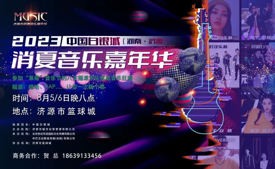 致青春、樂(lè)長(zhǎng)存。8月5日至6日晚八點(diǎn)將在濟(jì)源籃球城舉辦2023年濟(jì)源籃球城消夏音樂(lè)嘉年華,為廣大市民奉獻(xiàn)一場(chǎng)充滿激情的音樂(lè)文化盛宴。