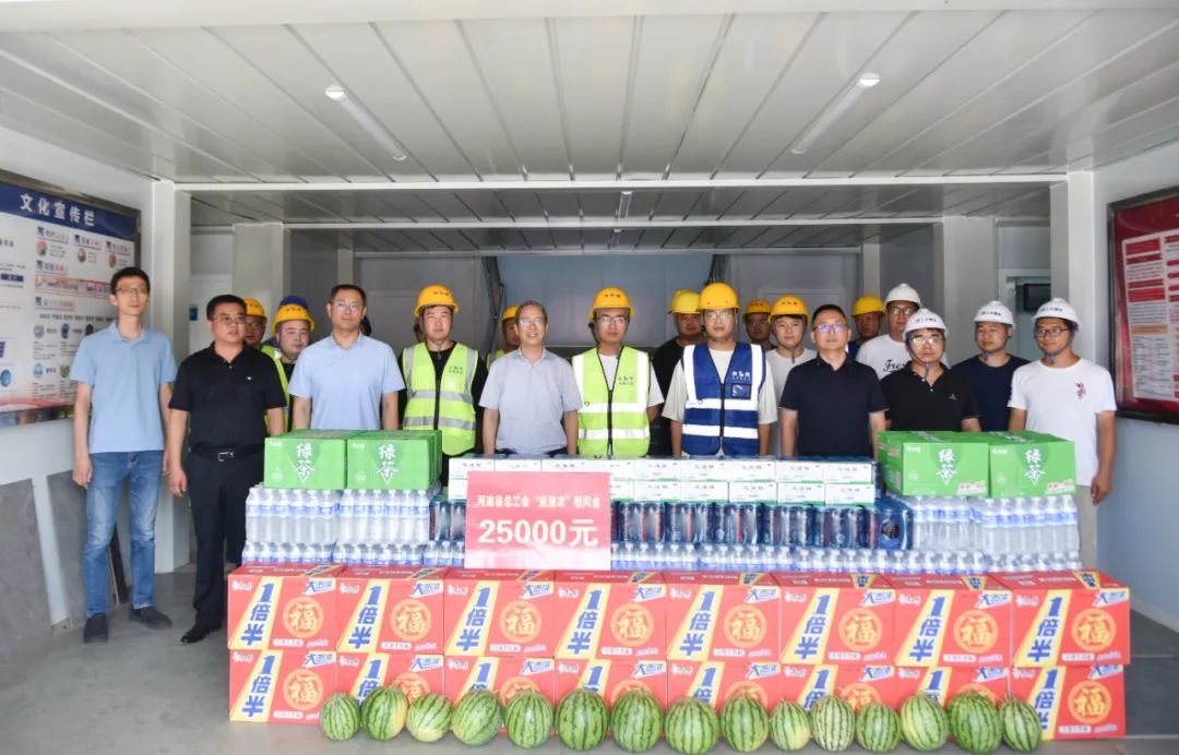 楊會(huì)卿一行來到進(jìn)出口加工貿(mào)易產(chǎn)業(yè)園A區(qū)項(xiàng)目工地,在查看工地高溫防護(hù)措施、安全施工措施,聽取一線人員高溫工作情況后,向炎炎烈日下,始終堅(jiān)守在工地,奮斗一線的集團(tuán)公司干部職工表示慰問,并發(fā)放西瓜、礦泉水、風(fēng)油精等防暑降溫慰問品。囑托工會(huì)要開展好關(guān)愛職工各項(xiàng)活動(dòng),叮囑大家注意高溫下施工安全,做好安全防護(hù),保障項(xiàng)目平安建設(shè)。
