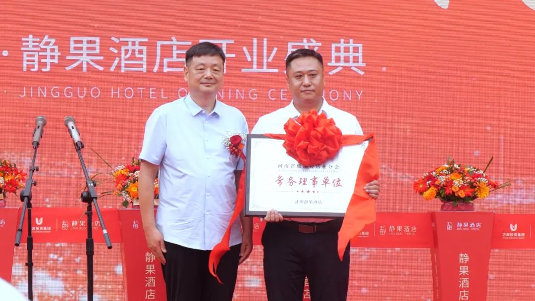 河南省旅游協(xié)會旅游飯店分會秘書長朱艷峰代表協(xié)會為濟(jì)源投資集團(tuán)靜果酒店授牌。