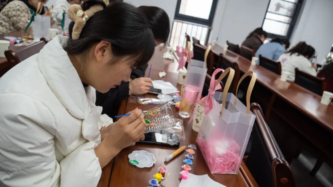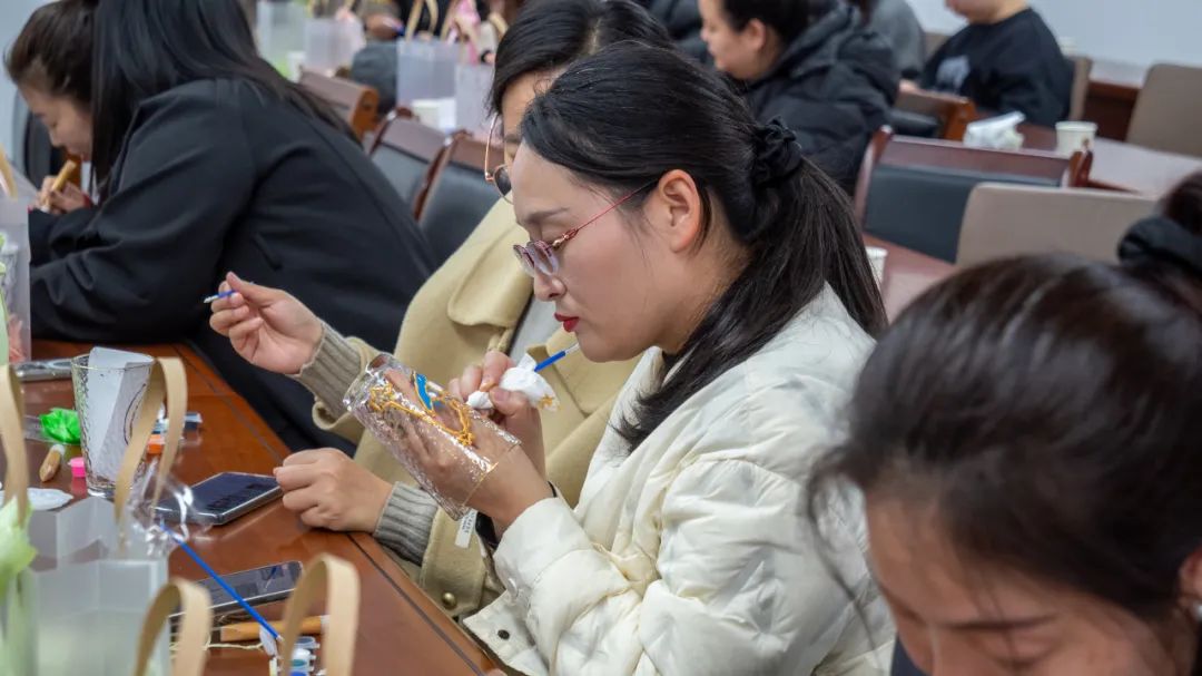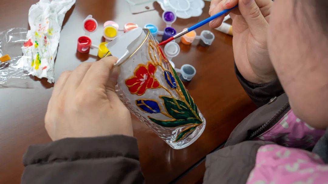 玻璃杯彩繪是近來(lái)熱門的創(chuàng)意手工活動(dòng)。豐富的色彩、創(chuàng)作的專注,在放松身心、緩解壓力之余,更是能起到心靈療愈的效果。活動(dòng)中,女職工們以晶瑩剔透的玻璃杯為畫(huà)布,用特制顏料勾勒出春日花卉、山水意境或個(gè)性圖案,每一筆都凝聚著對(duì)生活的熱愛(ài)和未來(lái)美好的期許。?