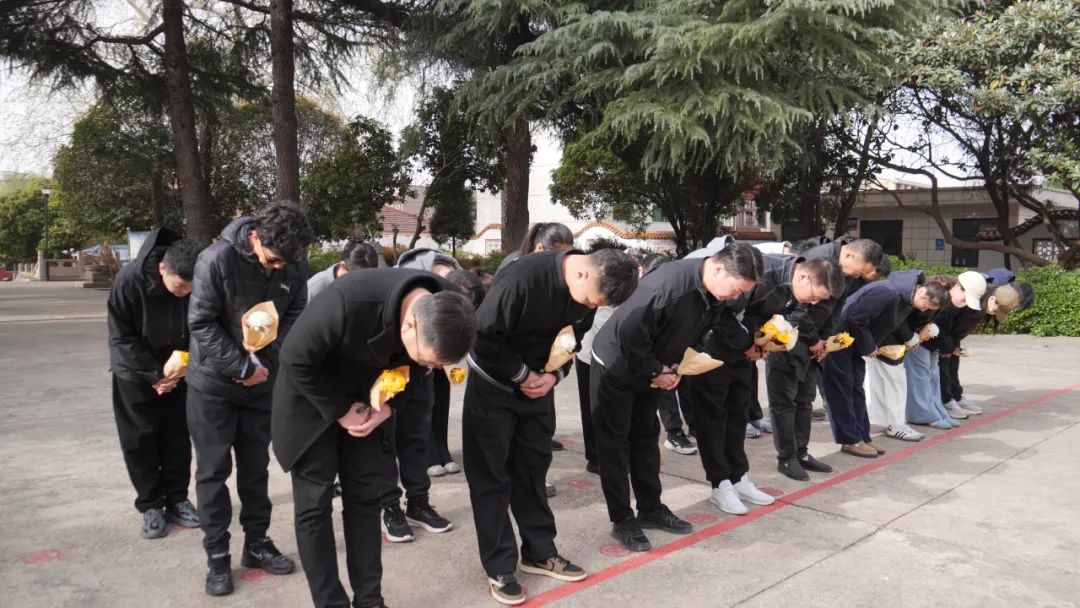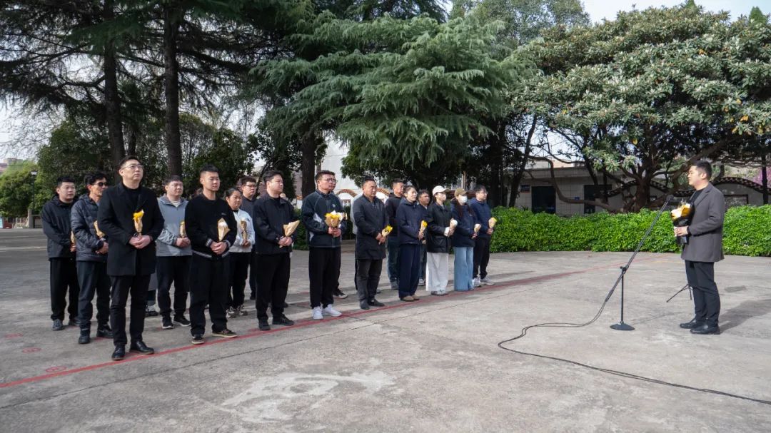 在莊嚴肅穆的烈士紀念碑前,全體人員列隊肅立,祭掃默哀,并莊重宣告,繼承先烈遺志,不負時代囑托,用生命詮釋信仰,以實干接續(xù)奮斗,把個人成長融入企業(yè)發(fā)展與社會責任中,為現(xiàn)代化建設不懈努力,接續(xù)奮斗。默哀過后,大家手托白菊緩步上前,向紀念碑鞠躬獻花,無聲傳遞對先輩們的敬意。