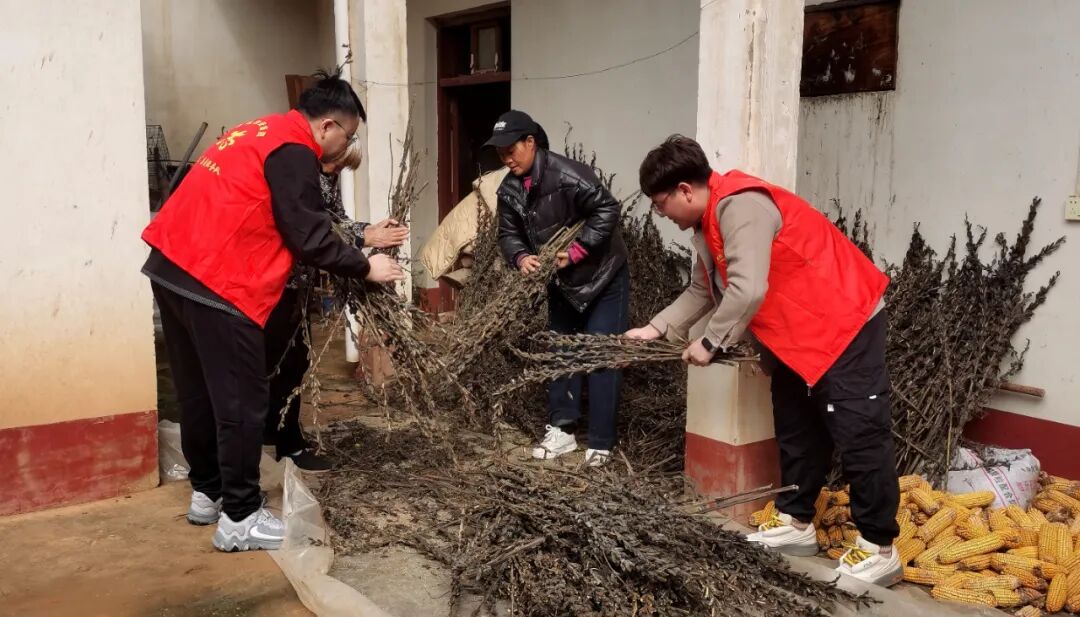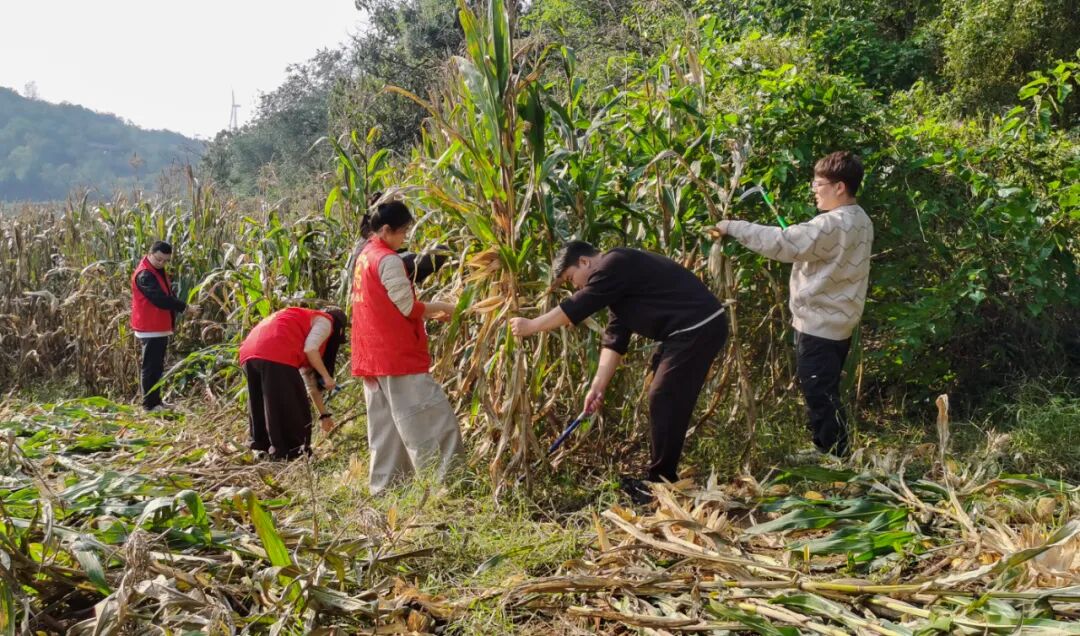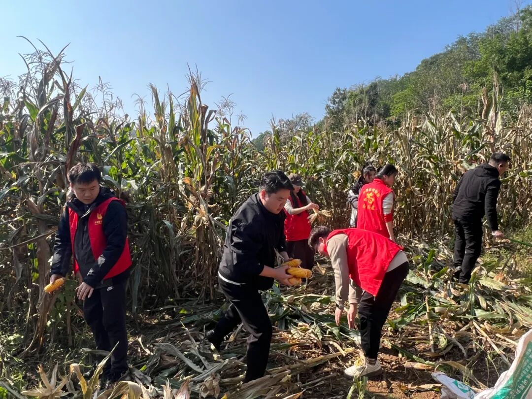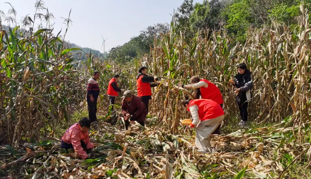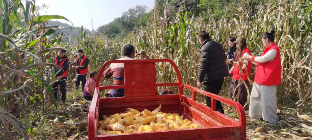 由于今年雨季延遲,導(dǎo)致坡池村玉米收獲期推后,冬季作物播種也面臨壓力。了解到這一緊迫情況后,志愿者們迅速行動,深入田間地頭,開展農(nóng)田治理與作物搶收工作。大家擼起袖子,俯下身子,與農(nóng)戶們一同搶收玉米,并協(xié)助運送歸倉。金黃的玉米地里,“志愿紅”與“秋收黃”交相輝映,構(gòu)成了一幅美麗的豐收助農(nóng)圖,及時緩解了農(nóng)戶們的燃眉之急。