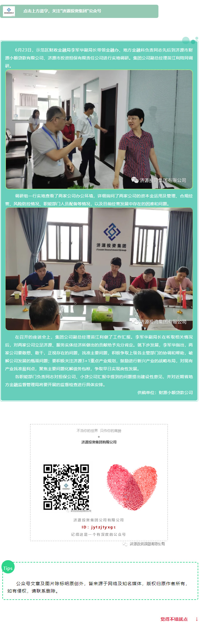 示范區(qū)財(cái)政金融局調(diào)研組蒞臨集團(tuán)財(cái)源小額貸款公司和投資擔(dān)保公司調(diào)研